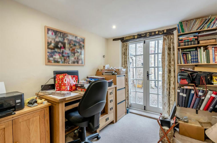 Office - 3.61m x 3.48m (11'10 x 11'05) - Radiator, inset spotlighting, BT Openreach socket, front aspect French doors.