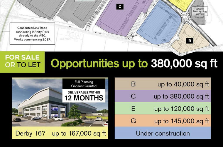 Offering direct access to A50 J3 and with East Midlands Airport nearby, Infinity Park Derby's central location is ideal for addressing supply chains and consumer markets across the UK and beyond.