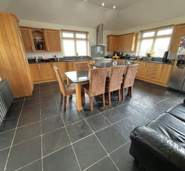Make piece Handmade Kitchen which includes. Range of base units with Granite worktops over and matching wall units and Island unit with incorporated breakfast table. . One and a half bowl sink unit with mixer tap attachment. Fitted dishwasher ( Not Working). Falcon cooking range with double oven and Induction 5 ring hob and extractor fan over. Wine rack, saucepan drawer and shelved tall cupboard. Triple aspect to front side and rear. Entrance door.