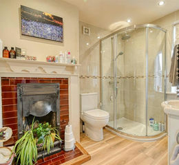 On the first floor the landing leads to the following: principal bedroom with a dressing room and en-suite bathroom comprising a large corner shower, hand basin, WC and fireplace. There are two further double bedrooms with fitted wardrobes and fireplaces and a single bedroom. The house bathroom includes a large walk in shower, large double width bath, WC, hand basin and heated towel rail.