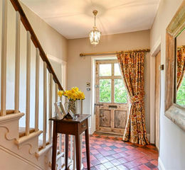 Accommodation - Harpsford Mill Farm offers a spacious layout with around 2,400sq.ft of living accommodation arranged over two storeys, upgraded to provide the perfect family home. Entering through the front door into a welcoming reception hall with stairs leading to the first floor and a quarry tiled floor, access leads on into a farmhouse kitchen and two more formal elegant reception rooms with feature fireplaces and log burners. The large kitchen is an excellent practical space centred around a 4 door AGA, with fitted wall and base units, work tops, a Belfast sink plus a built in BOSCH oven. A door leads into a separate boot room and Landry with plumbing for a washing machine and tumble dryer. Beyond the kitchen, a large oak framed garden room, with underfloor heating is filled with natural light and links to the cottage and gardens, whilst enjoying far reaching views over the gardens and surrounding fields.