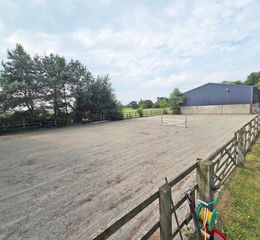 • 40’metre x 20 metre fully fenced manège with silica sand/plastic granule all weather surface, providing firm but responsive finish. It also has a drainage system two floodlights and water supply.