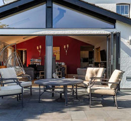 Full-height bifold doors open out to the gardens and surrounding countryside, drawing in natural light and creating an uplifting environment throughout the year. Internally, the space is well considered, with a vaulted ceiling, contemporary kitchen area, WC facilities and a flexible layout that can be adapted to suit a wide range of uses.