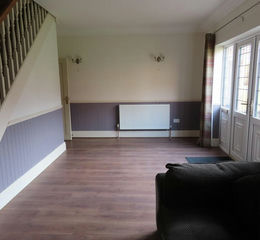LOUNGE 20' 3" x 13' 0" (6.17m x 3.96m) Contemporary electric fire, 2 radiators, understairs cupboard, wall lights and spindled staircase to first floor.