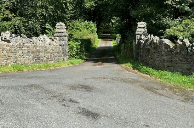 The drive is a particularly feature of the property with its flanking stone gateway opening onto the driveway flanked by specimen beach trees.