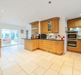 Kitchen/Breakfast Room - 6.45m x 5.64m (21'2 x 18'6) - Double glazed window to side aspect. Double glazed sliding patio door to Conservatory. Inset sink/drainer with mixer taps and 'Insinkerator' tap with instant boiling water and chilled water. Extensive range of wooden shaker style base and eye level unit with Granite worktops over. Breakfast bar. Inset Neff double oven/combi grill. Neff four ring hob with stainless steel hood over. Recess spotlights. Tiled flooring.