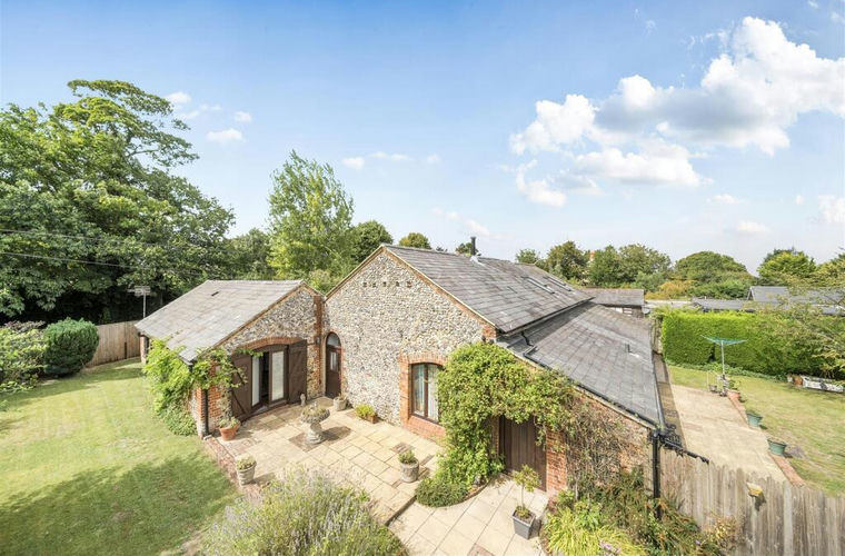 REDUCED - Situated in a desirable rural hamlet with 2.3 acres (*TBV) of paddocks and stabling, a unique detached listed Barn Conversion circa 1826 of 2,417sqft including an integral ground floor annexe. The property is of attractive brick and flint elevations and has been lovingly restored by the current owner boasting a wealth of stunning period features such as an open plan principal reception room with impressive vaulted ceiling, wooden flooring throughout, traditional brace & latch wooden doors and feature Brick fireplace with woodburning stove.