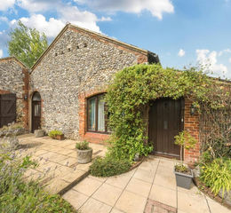 Outside Gardens - Hedgerows form a border to the barn creating a sense of privacy and a gate leads to the attractive knapped feature flint front elevation.The delightful cottage gardens wrap round the barn with clever areas for seating and Al Fresco dining and landscaped garden area with a wide range of established colourful plants, trees and shrubs.
