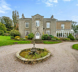 From the road turn down the driveway past the woodland and pass through a pair of impressive stone pillars and steel gates, this stunning country residence unfolds as the drive sweeps through to a large turning circle at the front where there is plenty of space for parking. The drive sweeps past the house up to a stone set area ahead of the garaging. The property is imposing in nature and has an important yet elegant feel. Stone steps rise up to the part glazed arch door which opens into the porch, here beautiful tiling and high ceilings can be found. A further part glazed door opens into the impressive entrance hall really setting the scene for this super period home. Here there is an attractive staircase and part panel effect walls along with doors off to various ground floor rooms. A WC is found off.