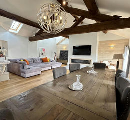 - Impressive Open Plan Living Dining Kitchen with Vaulted Ceiling & Exposed Beams
