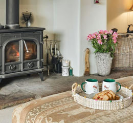 From the kitchen, a utility and cloakroom provide everyday practicality, with direct access outdoors - ideal after a muddy walk or for children and dogs returning from adventure. Beyond, the sitting room is a space to slow down. Exposed beams and a log burner lend warmth and charm, while French doors open onto a balcony that catches the last of the sun. From here, the view stretches across open fields, unbroken and timeless.